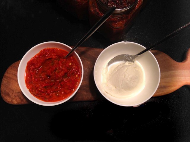 One of those “must do” recipes is Ajvar, a delicious sauce made of red peppers. It is our very favorite and the one I make the most. Not only ours but our friends also judging from the jars which just disappear! Ajvar is a trademark for the Serbian cuisine. Its name comes from the Turkish word “ havyar” which means caviar. Serbs claim its origin by calling it “Serbian caviar”. It's also called a salad (something like spread), and it could be eaten in many ways and combined with many foods. The most beloved and known is the one as a starter, with bruschetta and kajmak ( traditional dairy, something between cheese and butter).